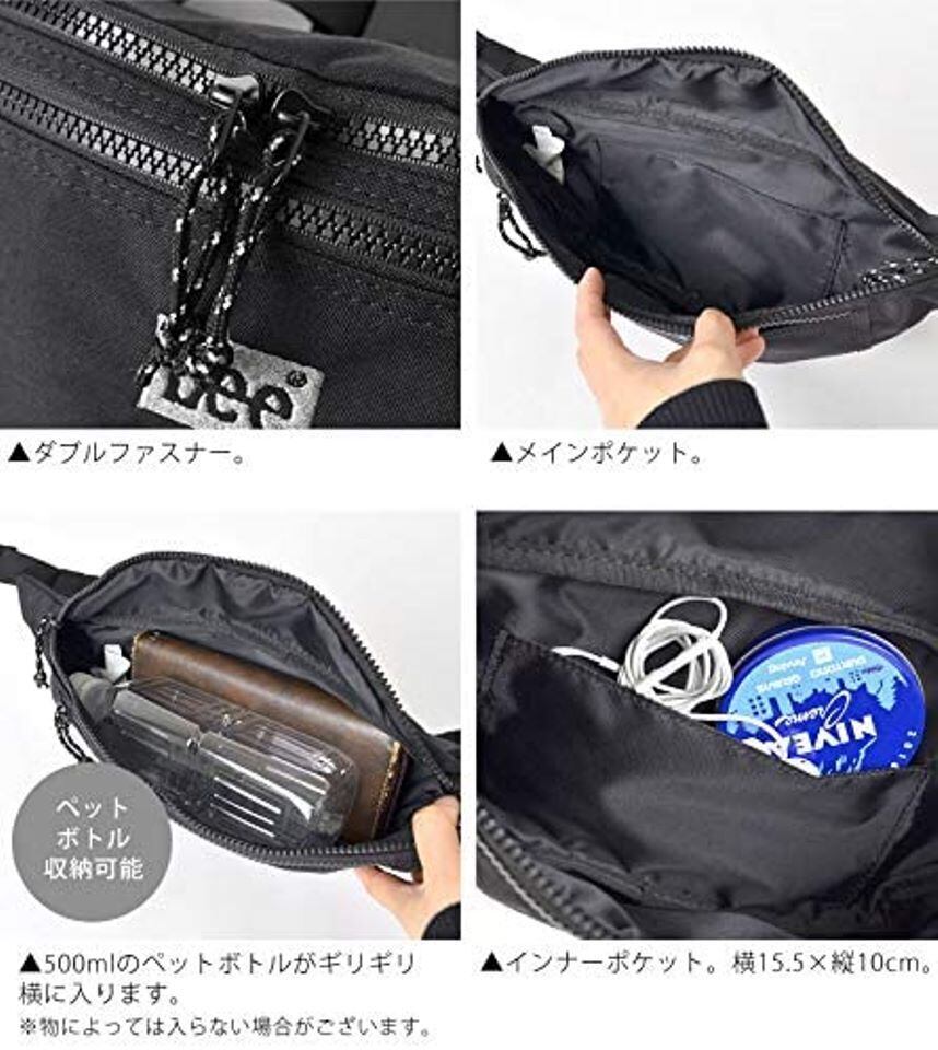 【Lee/リー 撥水 加工 ナイロン ウエストバッグ 】タフナイロン 丈夫 ウエストポーチ ペットボトル スマホポーチ ボディバッグ アウトドア メンズ・レディース 3L LEE